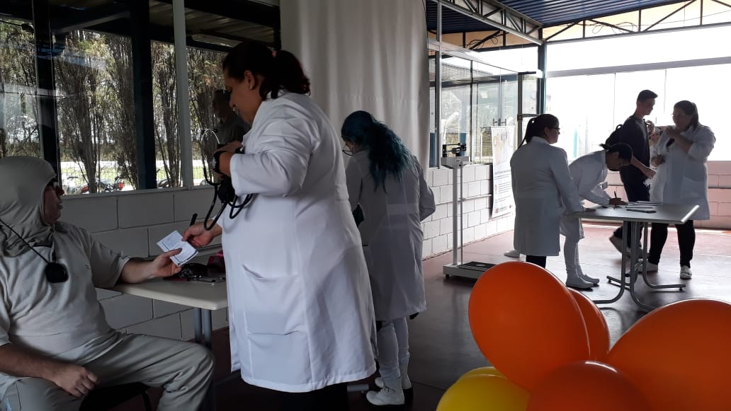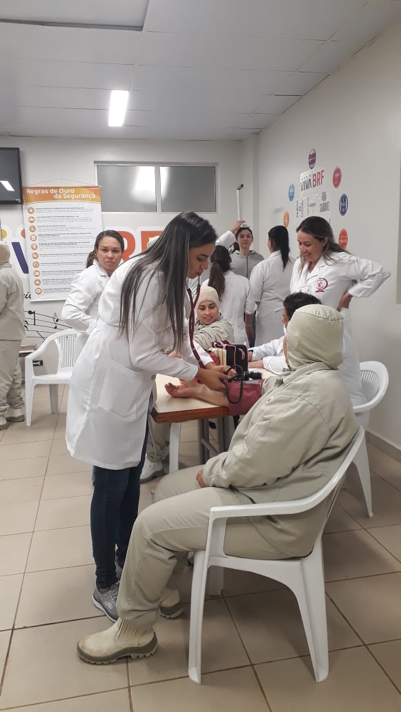 Alunos do Curso de Especialização em Urgência e Emergência, e do Curso Técnico em Enfermagem participaram da Semana Interna de Prevenção de Acidentes de Trabalho da BRF – Tatuí. Durante o evento, os alunos realizaram aferição de pressão arterial, teste glicêmico, verificação de IMC, além da interação entre os funcionários.