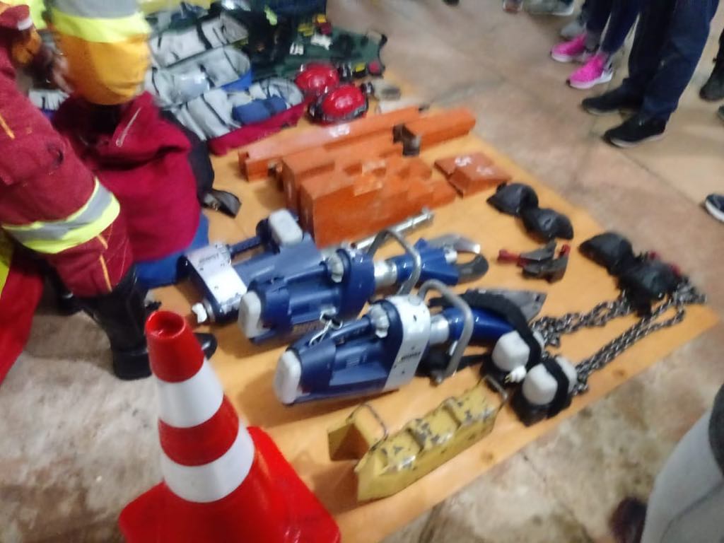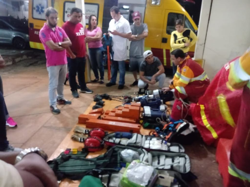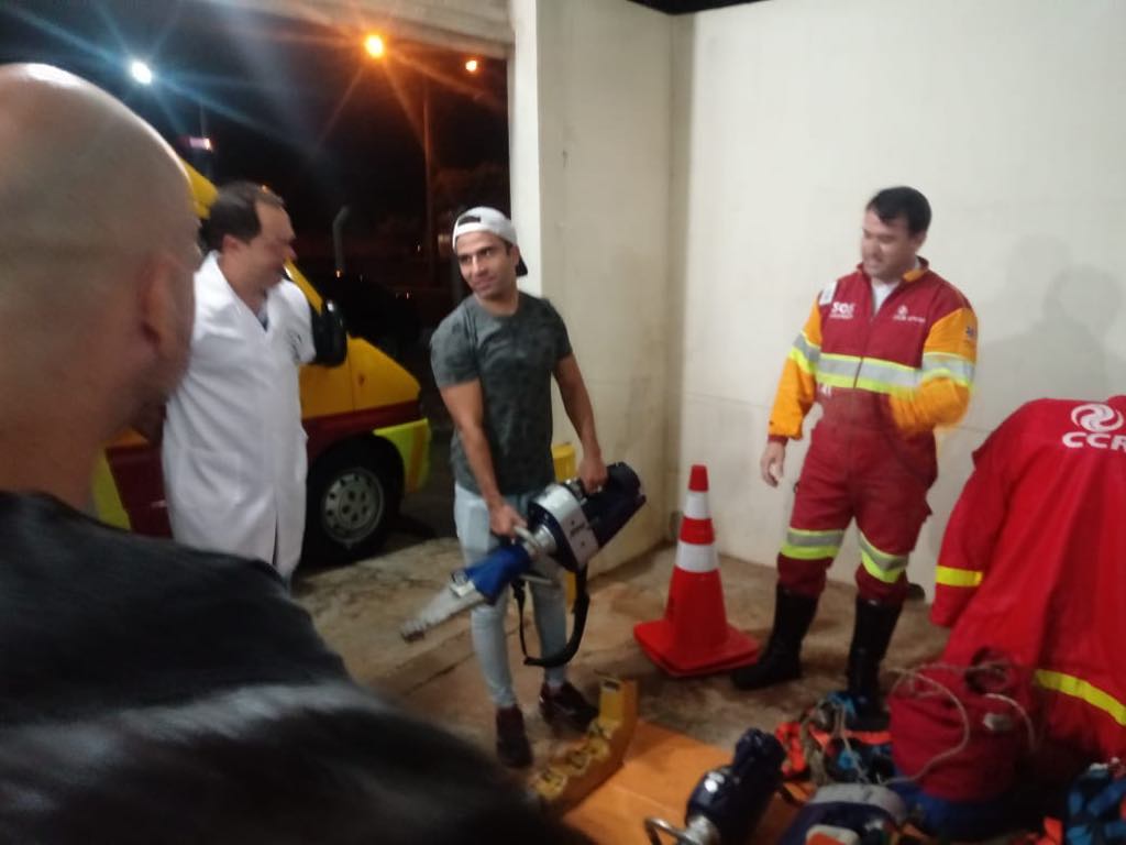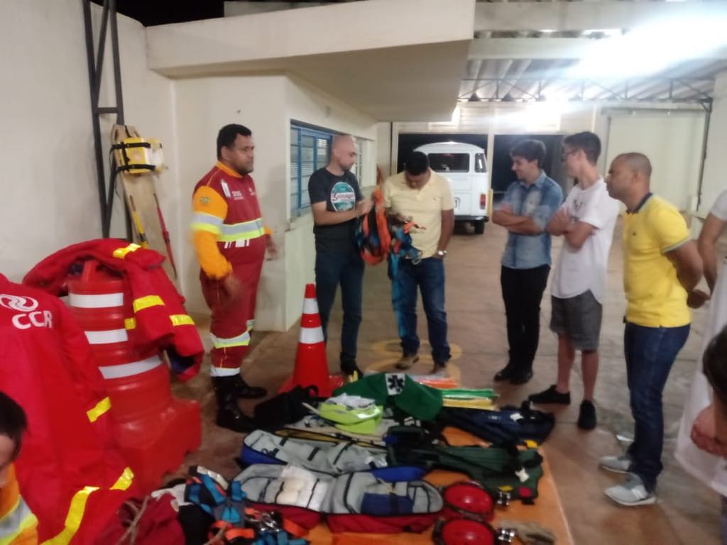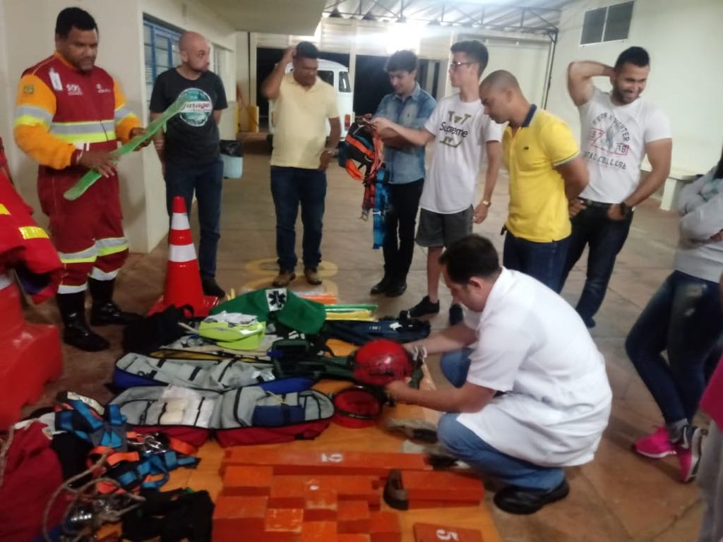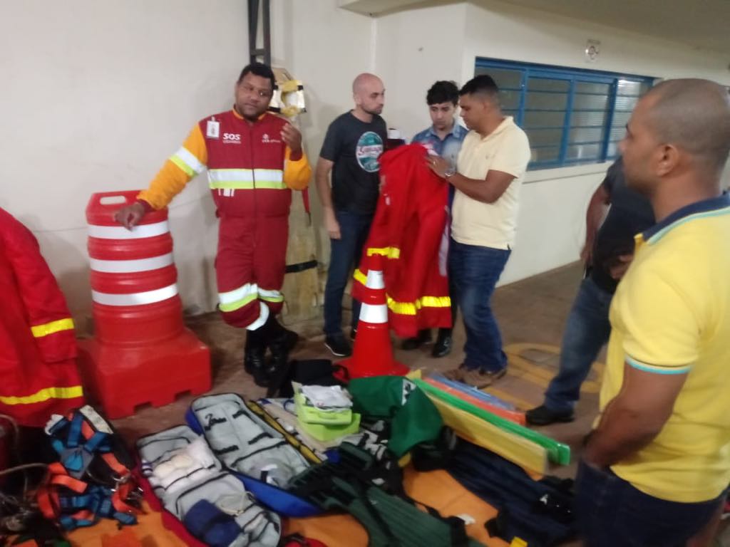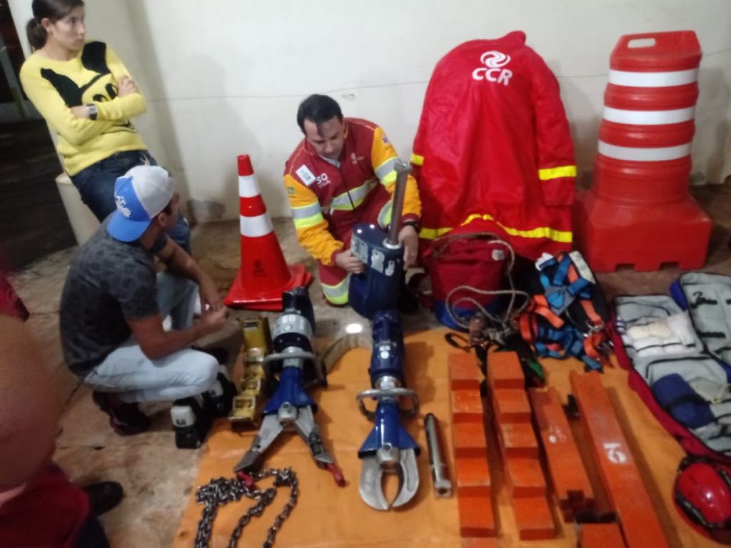 Alunos de Técnico de Segurança do Trabalho participam de aula prática ministrada pelos Socorristas da CCR, demonstrando todos os equipamentos de segurança e outros para o resgate de vítimas de acidentes automobilísticos.